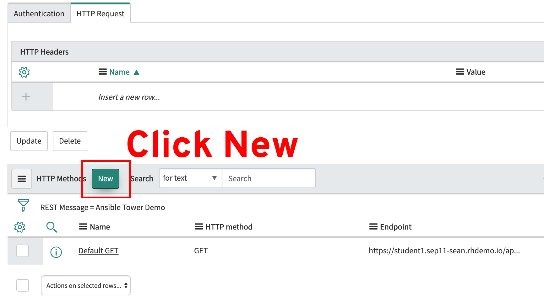 | Endpoint | $TOWER_URL/api/v2/job_templates/SNOW-Demo-Compliance-Fix/launch make sure to use correct $TOWER_URL, example in previous step. |
