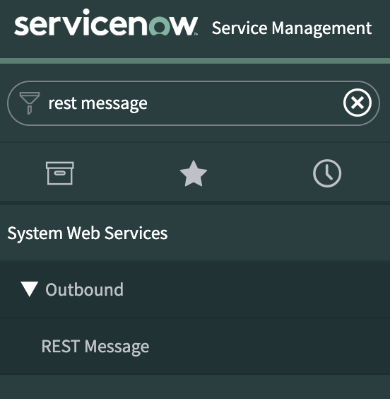 In the ServiceNow instance, navigate to System Web Services » Outbound » REST Message